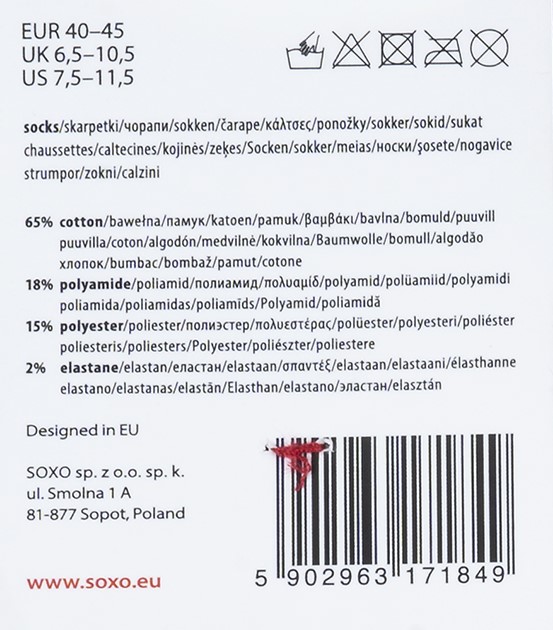 ¡Es hora de calcetines coloridos SOXO! Satisfarán a los clientes más exigentes. Los calcetines cómodos garantizarán la comodidad durante todo el día. Se ajustan perfectamente al pie y tienen colores interesantes.