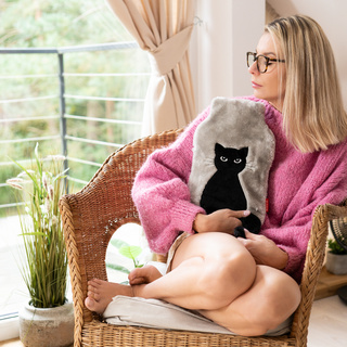 Bolsa de agua caliente SOXO gatito con corazón, azul marino, 1,8 L